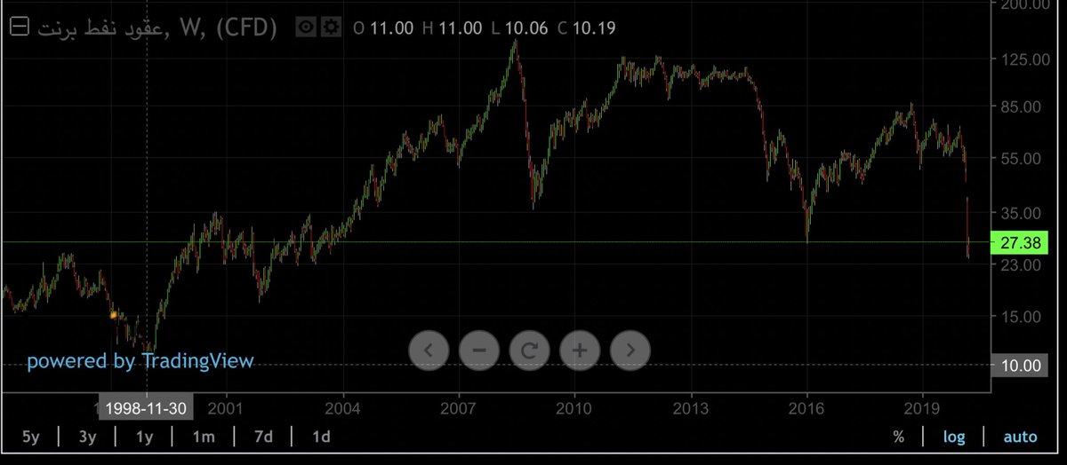 لذا اعتقد سيعود #النفط لسنوات 1998 وسيكون دورة هبوط سعري لسنوات "ليخرج المنافسين عالي التكلفة" ثم تعود دورة الصعود من جديد ..!!