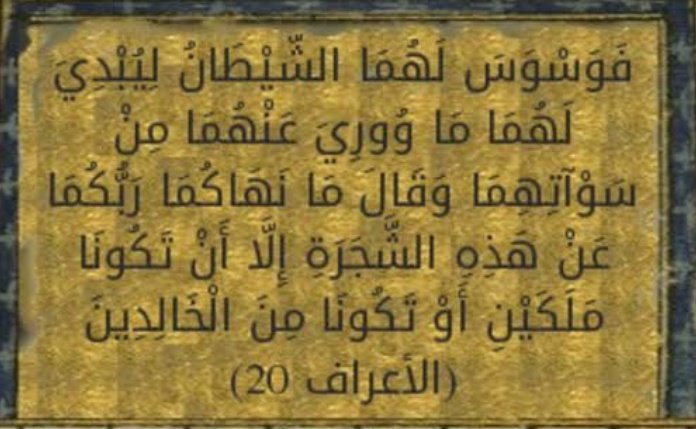 23/ما يهمنا هنا أن إبليس اللعين راح يتظاهر بأنه يريد مصلحة آدم وزوجته فادَّعى كذباً أن هذه الشجرة هى(شجرة الخُلد) وأن الأكل منها يورث الخلود فى الجنة والمُلك الدائم