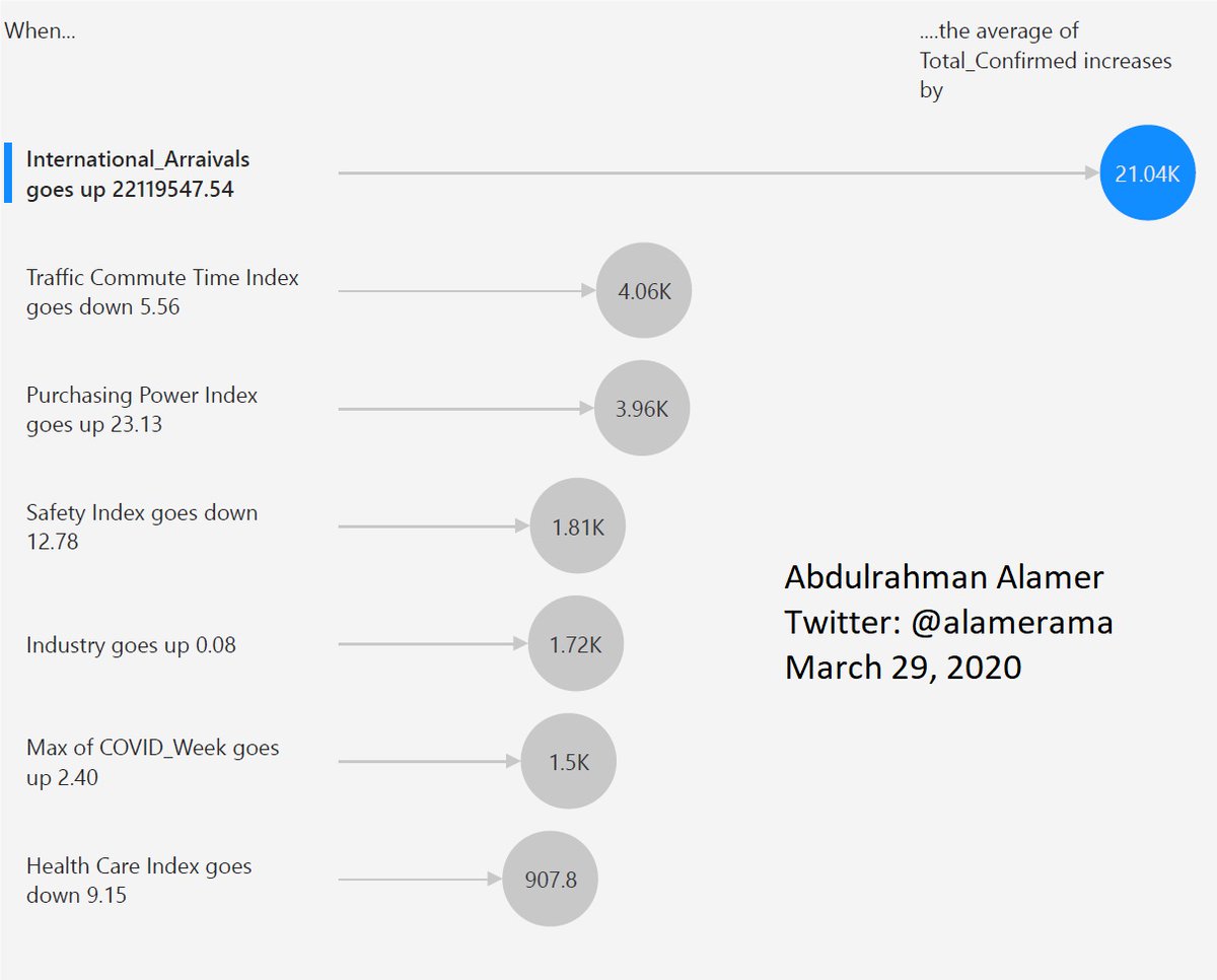 أود أن أوضح أن في دراستي التي قارنت بها السعودية بدول قمة العشرين، حللت ارتباط انتشار #COVID19 بعدد 31 مؤشر من مؤشرات جودة الحياة لـ 196 دولة، ووجدت أن هناك 7 عوامل منها هي الأكثر تأثيراً Key influencers في انتشار الفايروس