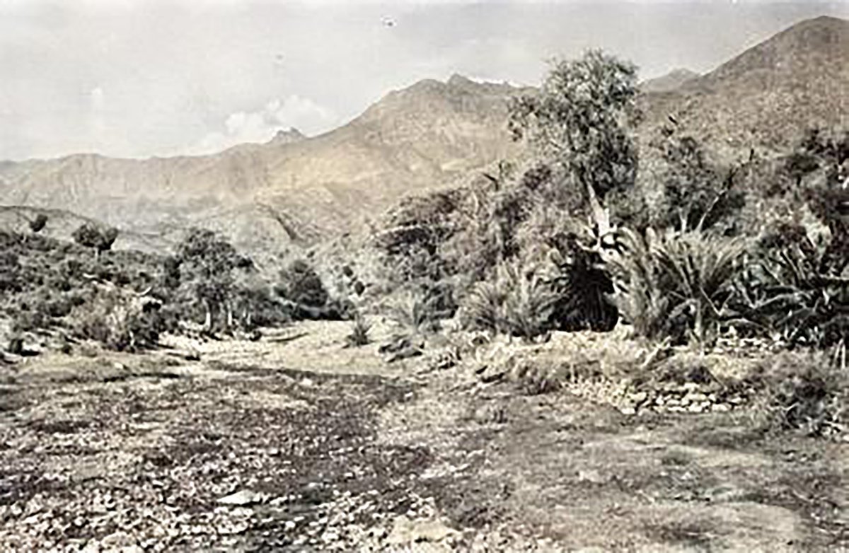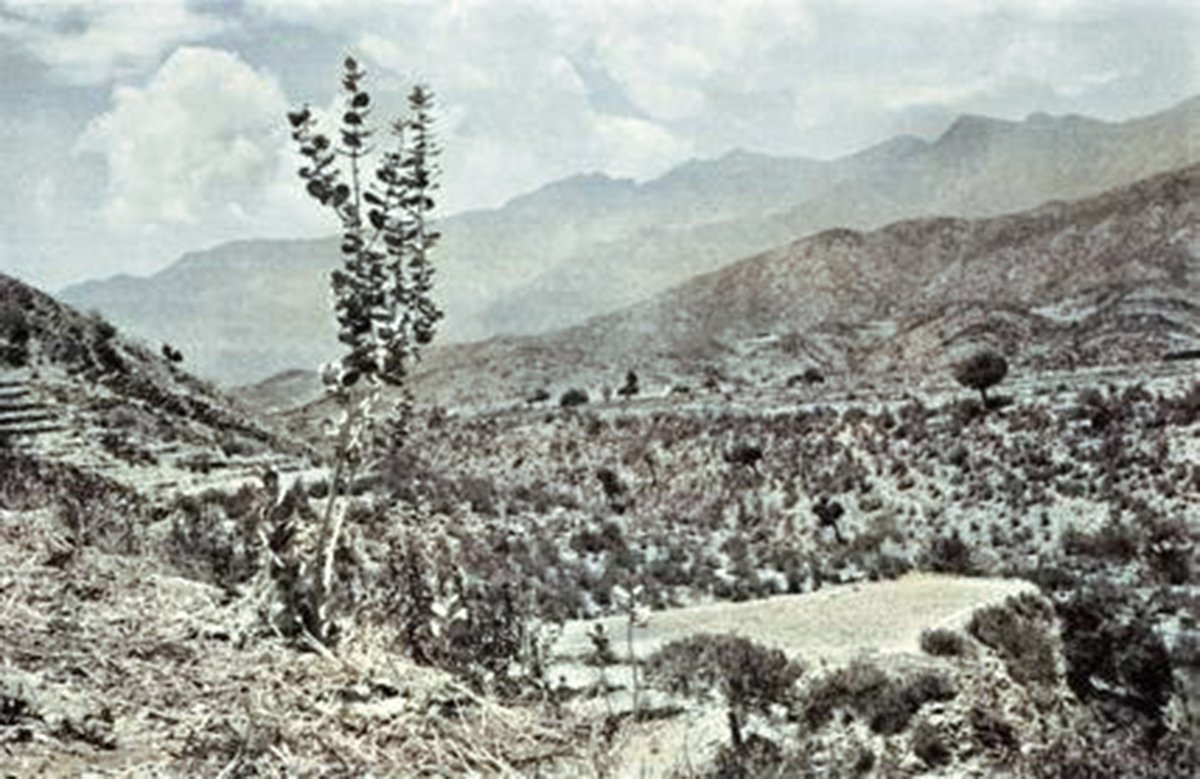 المدرجات الزراعية في أعلى جبال فيفاء في عام 1947 م، واخرى من تصويري عام 2017،