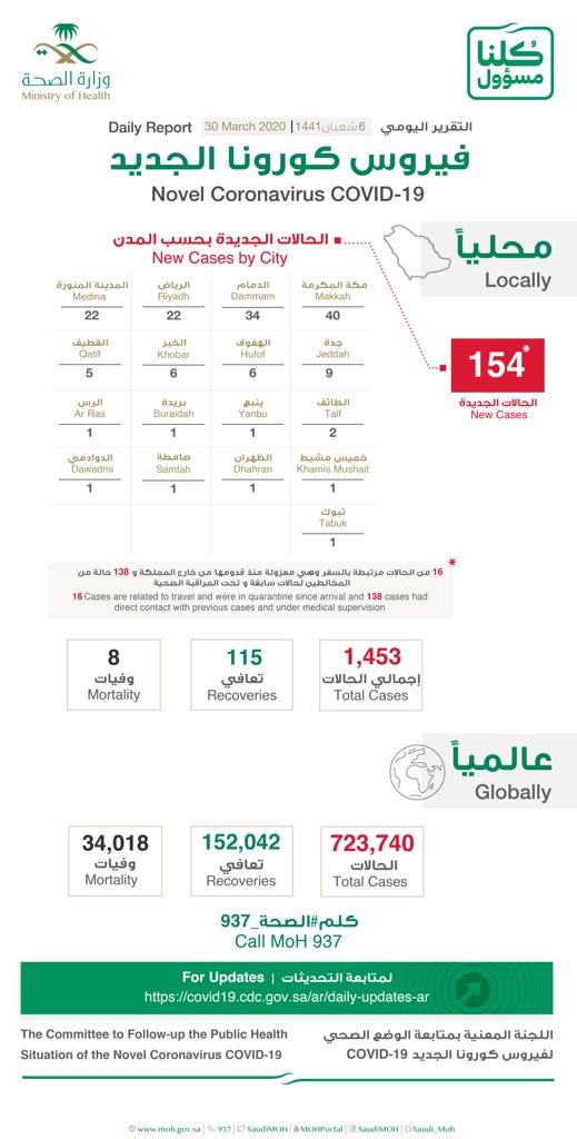 تُعطي تحديثات يومية، كما انها أجرت أكثر من 51000 تحليل جاعلاً ذلك السعودية من أفضل 10 دول عالمياً، فكل الشكر لكل رجل وامرأة يعملان من أجل صحة، أمن و راحة المواطن والمقيم