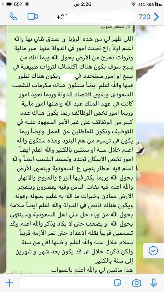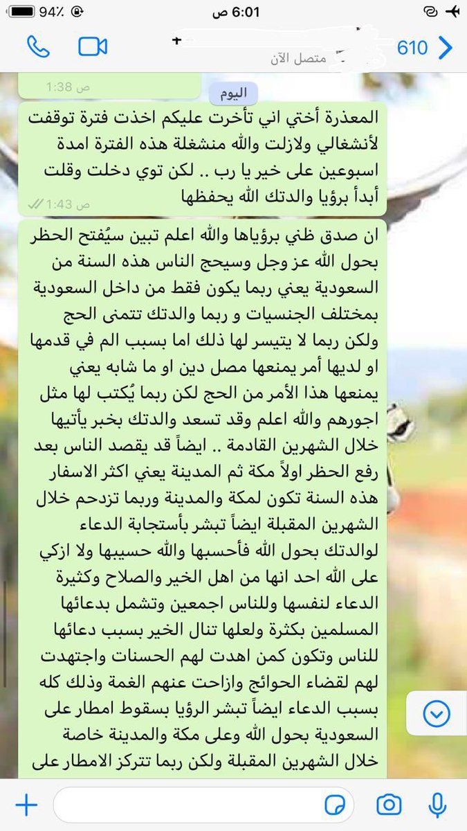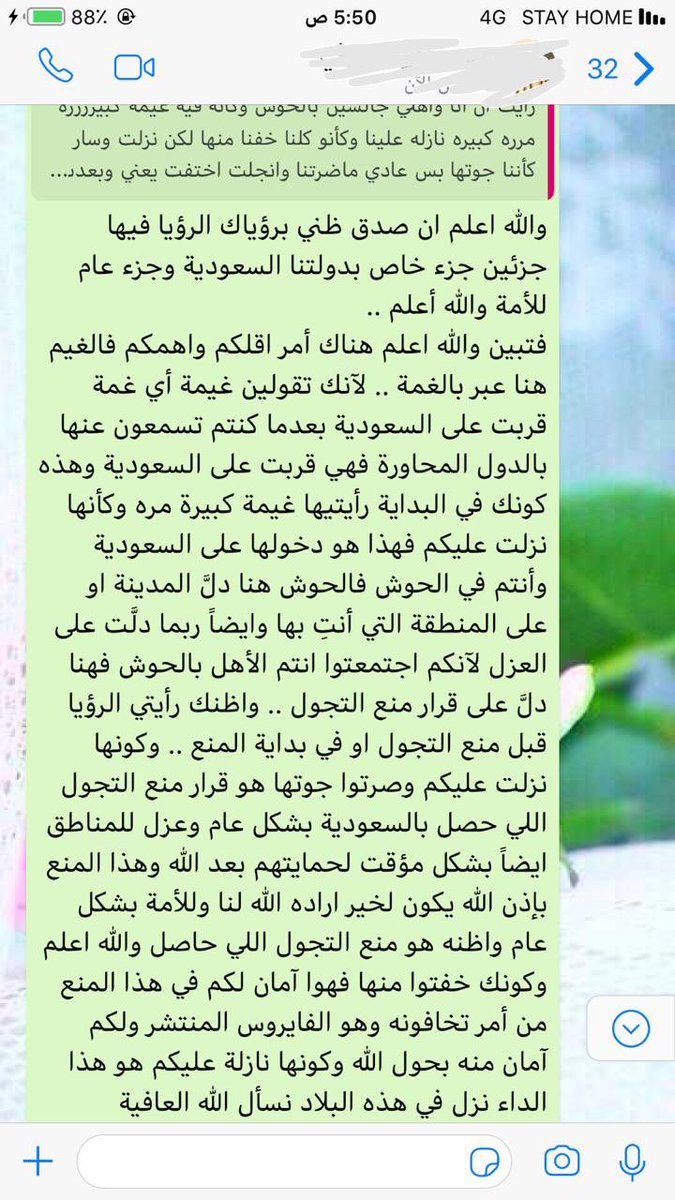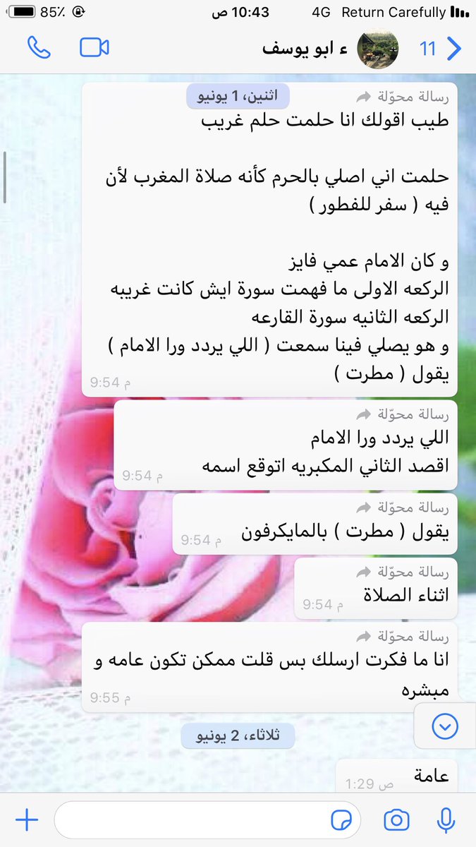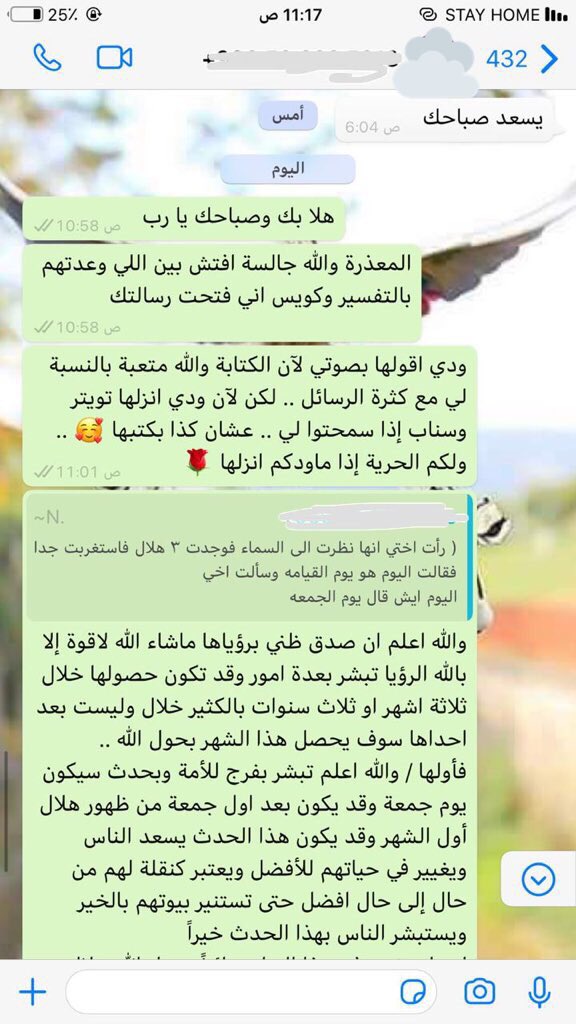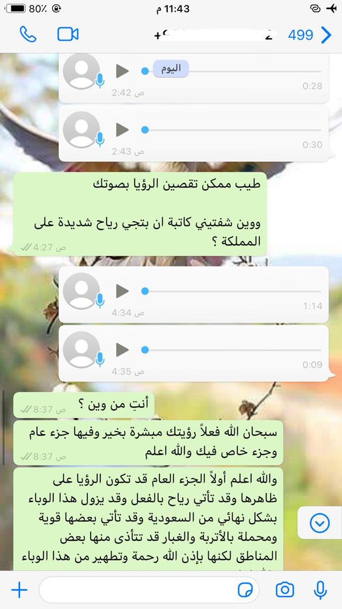 وردتني رؤى عامة على الواتس مطمئنة بفضل الله.. بعضها فسرتها لكن لم أستأذن من اصحابها بعرضها لكم وبعضها لم افسرها بعد.. لكن بحول الله سأعرضها لكم بعد الأستئذان واضعها في ثريد تحت هذه التغريدة على خير والجميع بخير يا رب 🙏🏼❤️🌹