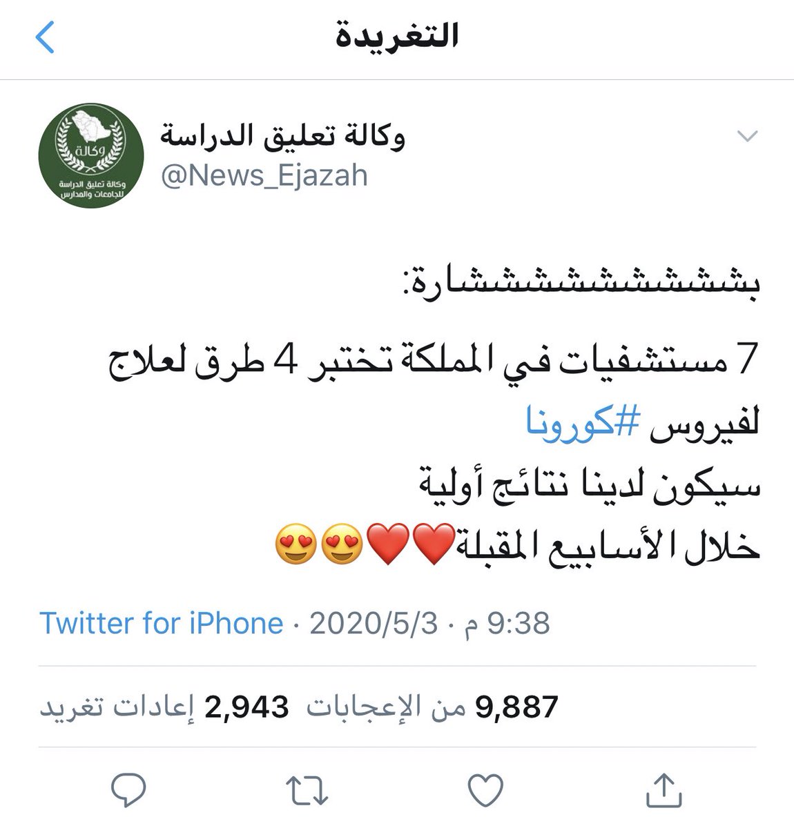 ايضاً قد يتأخر رفع الحظر قليلاً ويكون هناك تريث بعد الإعلان عن اكتشاف العلاج وفيه صدور قرار يسعد الجميع وهذا التأخير يكون فيه مصلحة والله اعلم بالصواب.