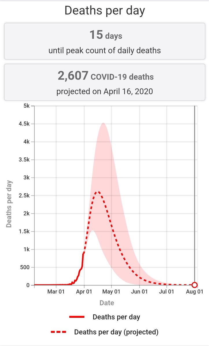 تقوم مراكز الابحاث في الدول بعمل نماذج لتوقع مدى إنتشار #وباء_كورونا وعدد حالات الوفاة، معهد القياسات الصحية و التقييم IHME في جامعة واشنطن طوّر نموذج يتوقع ٤٠ الى ١٨٠ ألف حالة وفاة في أمريكا خلال أربعة أشهر.