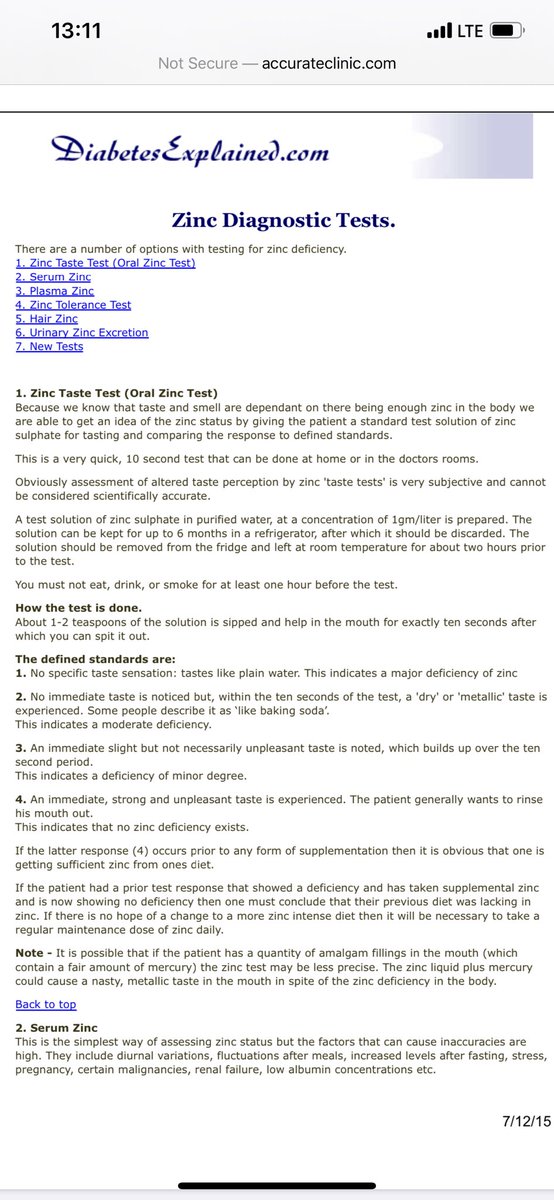 * لم يثبت انه هذه الطريقة تشخص نقص الزنك ١٠٠٪ وتحتاج إلى بحوث اكثر