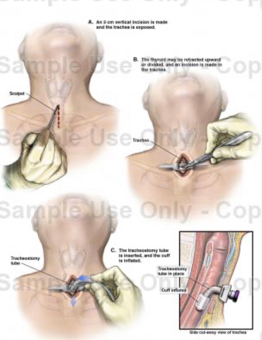 - اما اذا كانت الحاجة الى وقت طويل لجهاز التنفس غير مؤكدة ١٠٠٪ فإن المريض قد يخضع لعملية لا يحتاجها فعلاً وبالرغم انها عملية آمنه تماما إلا انه قد يستغرقه من ٦ الى ٨ اسابيع حتى تغلق الفتحة تماما بعد ازالة الجهاز التنفسي منه وهو لم يكن يحتاجها من البداية.