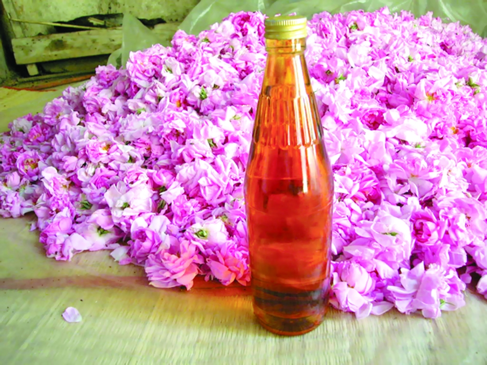 بعد استخراج ماء الورد يتم وضعه في إناء كبير ليبرد وفي هذه المرحلة تظهر طبقة ( زيتية سوداء لزجة ) فوق ماء الورد تسمى محليا "#عرق_العود " يتم إزالة هذة الطبقةوالتخلص منها (لايوجد استعمال لها الى الآن مع محاولات لاستخدامها في عدة مجالات )