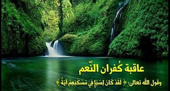 (لقد كان لسبإ في مسكنهم آية جنتان عن يمين وشمال كلوا من رزق ربكم واشكروا له بلدة طيبة ورب غفور فأعرضوا فأرسلنا عليهم سيل العرم وبدلناهم بجنتيهم جنتين ذواتي أكل خمط وأثل وشيء من سدر قليل ذلك جزيناهم بما كفروا وهل نجازي إلا الكفور