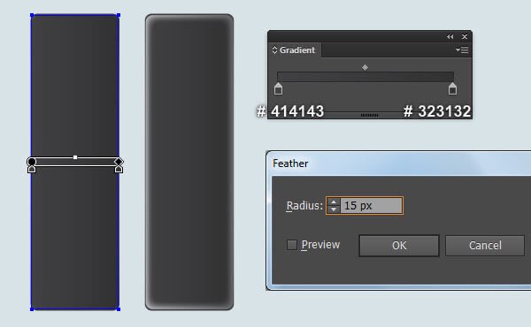 حدد المستطيل الذي تم إنشاؤه في الخطوة 2 وأنشئ نسخةً منه (Ctrl + F ، Ctrl + C). ثم استبدل لون التعبئة الحالي للنسخة بتدرج خطي جديد كما هو موضح في الصورة الأولى. حدد المستطيل الناتج، وافتح لوحة Transform (من Transform>Window)