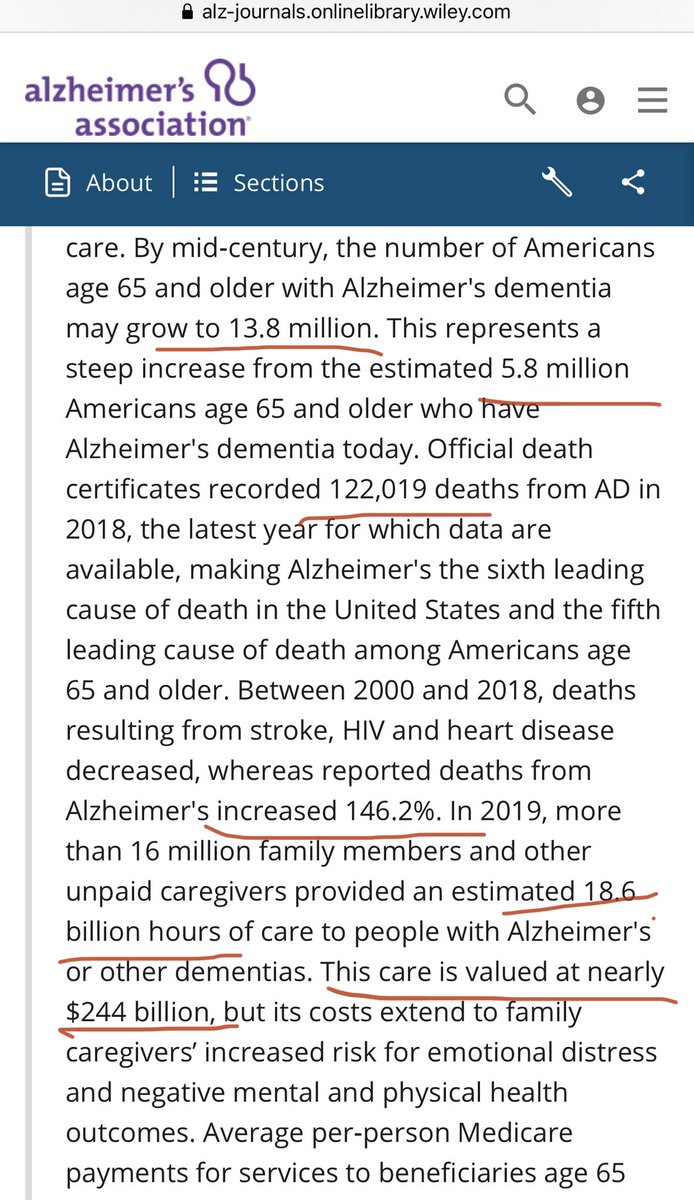 قراءة من زاوية أخرى لملف #كورونا ... سأطرح لكن في هذا الثريد بعض ما جاء في هذه دراسة عن مرض الالزهايمر في #أمريكا.