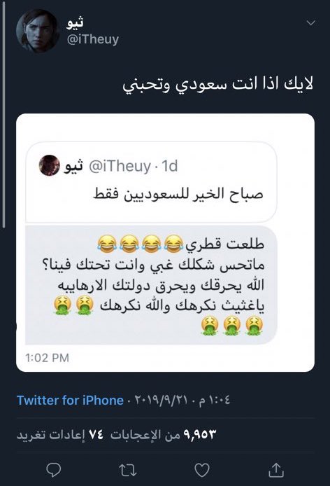 و بكذا انتهينا بس كنت حاب اعلمكم كيف قاعد يشوه صورة السعوديين و كيف مستغفل متابعينه بذي الصورة القذرة و اللي للحين ما بلكه يتفضل يبلكه @iTheuy و شكراً