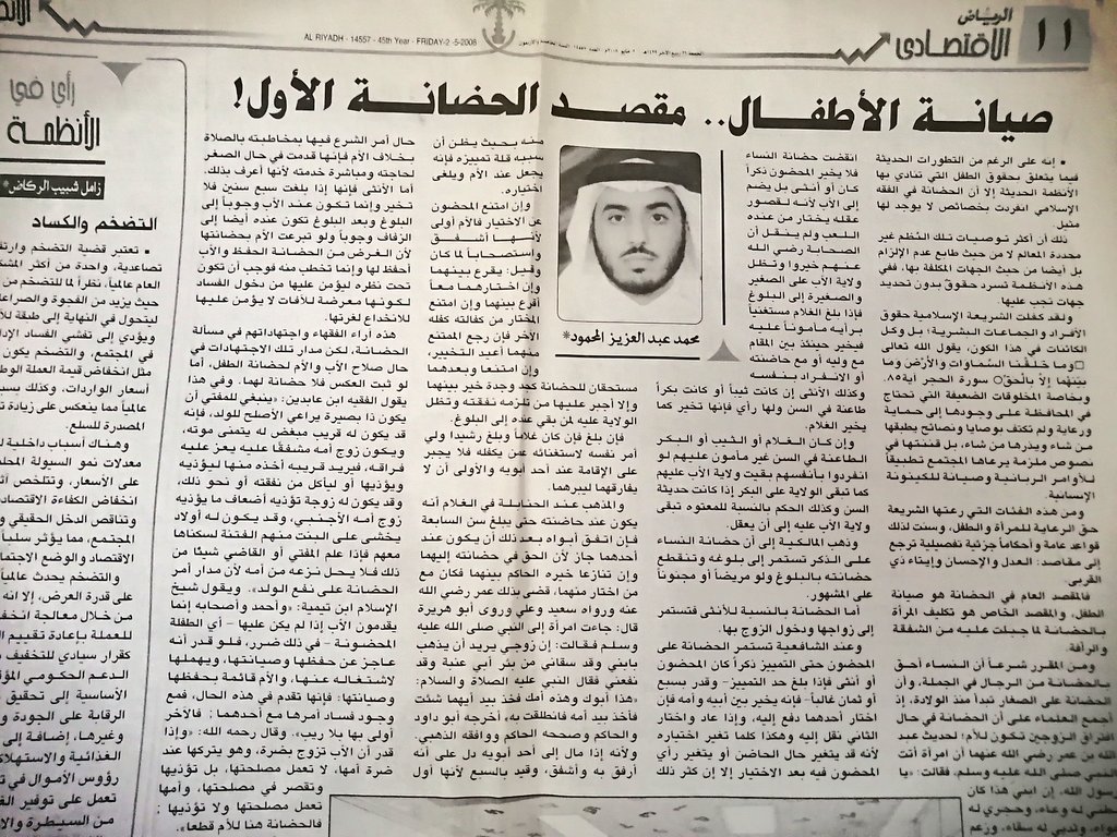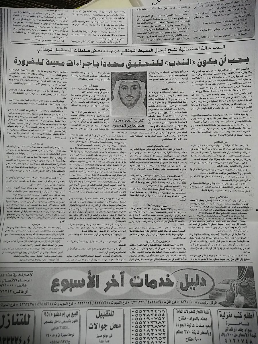في الفترة من عام 1425 وحتى 1430 كنت كاتباً منتظماً في @AlRiyadh صفحة الأنظمة والمحاماة، وهي صفحة أسبوعية أتناول فيها شرح الأنظمة الجزائية والتعليق على الأحداث والوقائع الجنائية المعاصرة.