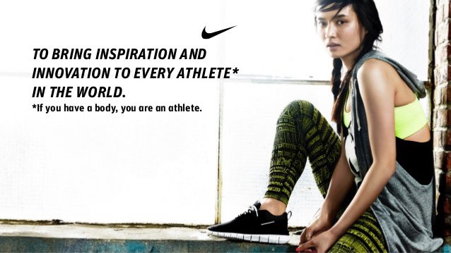 بعدين قامت نايكي بترجمة المهمة إلى تاق لاين (بس سوها) “Just do it” فتحولت المهمة إلى رسالة براند تسويقية.?