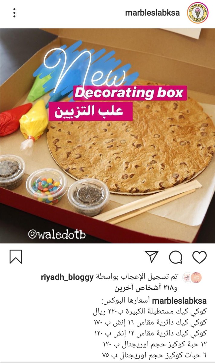 يقدمون بوكس يحتوي على قطعتين كوب كيك وقطعة كوكيز مع اكياس كريمة التلوين والزينه بسعر ٣٥ريال