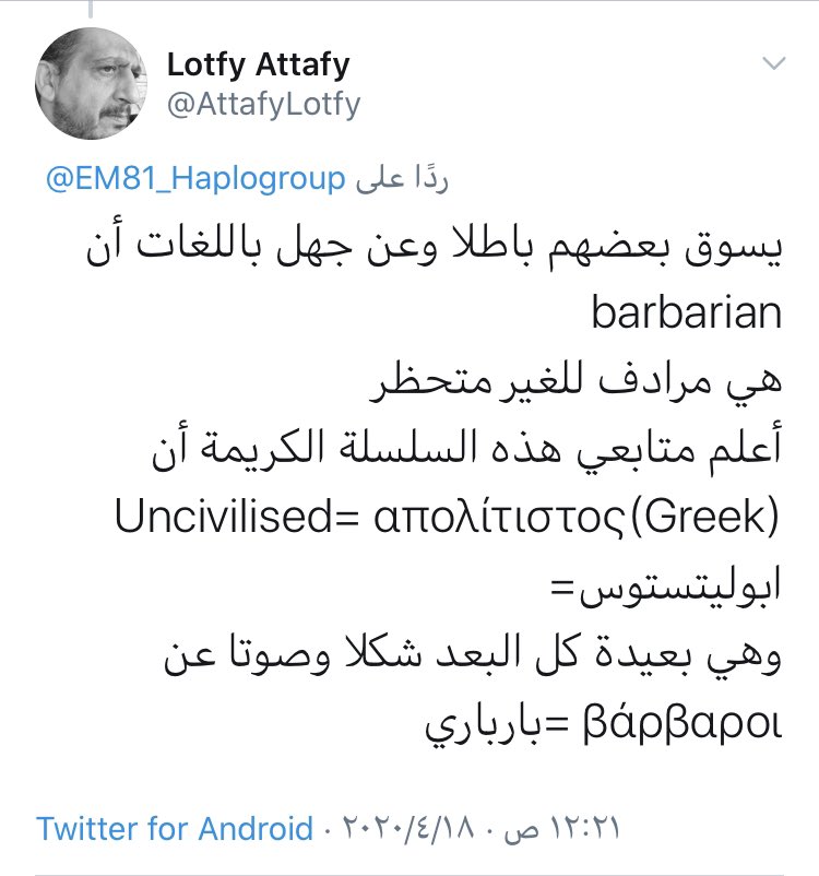 بربر ياعصيد ليست مفردة يونانية وليس لها جذر يامُتعلم
