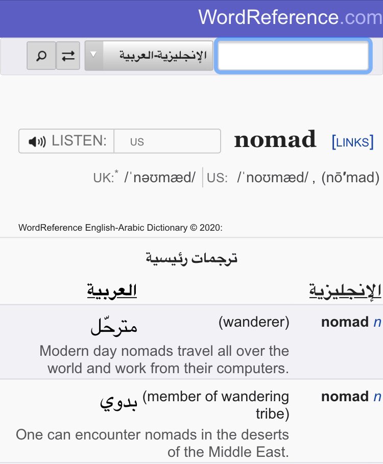 وكما استشهد بالمؤرخ بليني الأكبر الذي استخدم جملة (Νομάδας) بنفس المعنى ويشير الى كون هذه الكلمة يقابلها في الاغريقية نفس المعنى اللغوي لهذا المصطلح في اللاتينية.