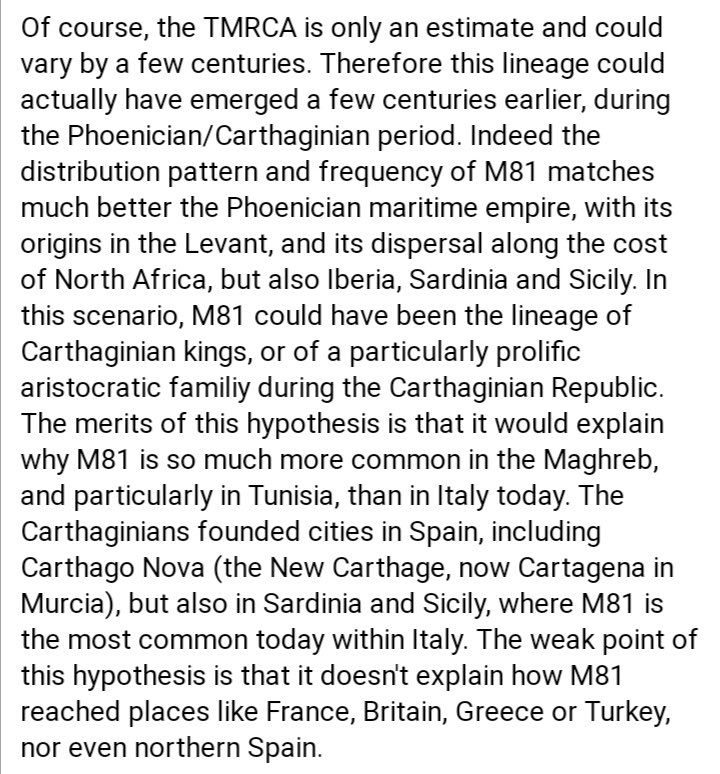 ويكاد يتعدى ذلك بأن يصبح E-M81 مؤسس قوي لقرطاجة (لم تخرج ولا نتيجة فينيقية على هذا التحور حتى الوقت الراهن)