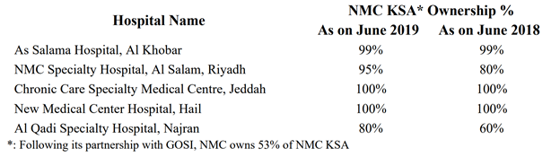 يمكن الحصول على مزيد من المعلومات عن طريق التقرير النصف سنوي للنصف الأول من 2019 لشركة NMC ويمكن الإطلاع عليه عن طريق الرابط: