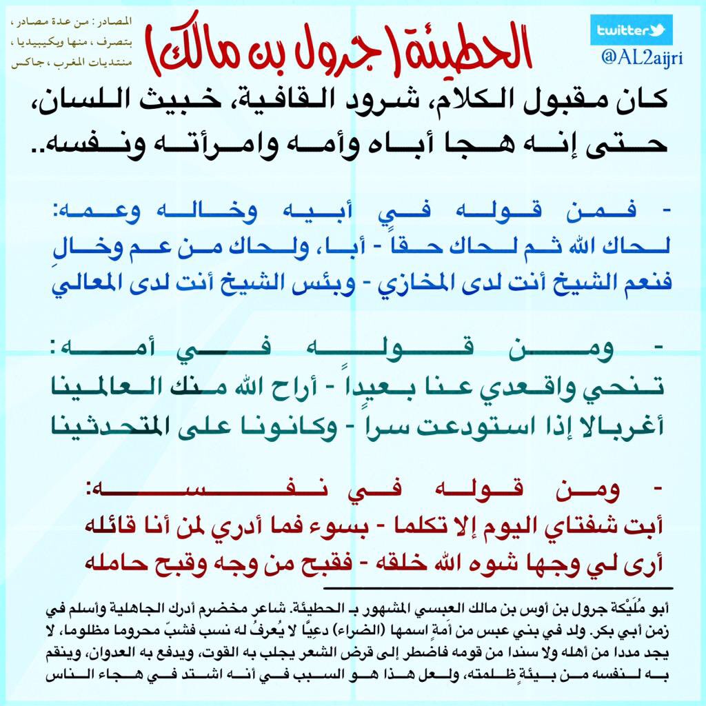 الحطيئة لم يسلم أحد من هجاءه.. هجا أبيه وأمه وزوجته وخاله وعمه.. وحتى نفسه