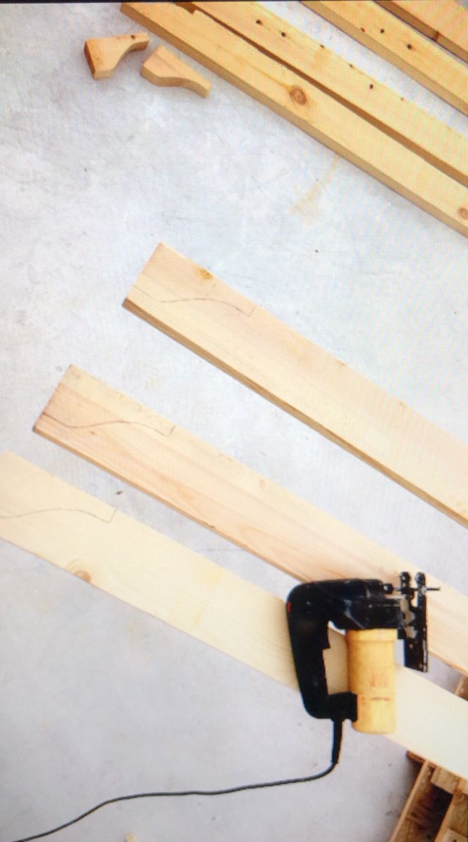 ٢ - بعدها يتم قص عدد ٥ من الألواح من المنتصف ليكون عرض الواحده