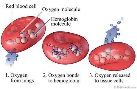 و لنوضح اكثر وظيفة كريات الدم الحمراء يجب ان نذكر انها تحتوي على ذرات الحديد السامة التي تعمل كاداة لحمل و تخزين الاوكسيجين داخلها و من ثم نقله من الرئة الى باقي اعضاء الجسم. تحتوي كل خلية دم حمراء على اربع ذرات من الحديد و بالتالي لها القدرة على حمل اربع ذرات اوكسوجين لكل خلية