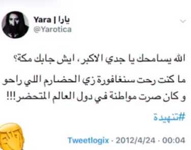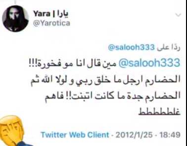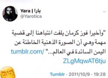 تقف اليوم على #صراط_جلنار يارا باشراحيل @yarotica ناكرة المعروف يمنية الأصل بعد أن تعلمت وكبرت وأكلت من خير #السعودية هي وعائلتها استغلت الربيع العربي لتقوم عبر حسابها في تويتر بالتحريض على الوطن والحكومة والإساءة لقياداتها وشتم الشعب بأبشع العبارات