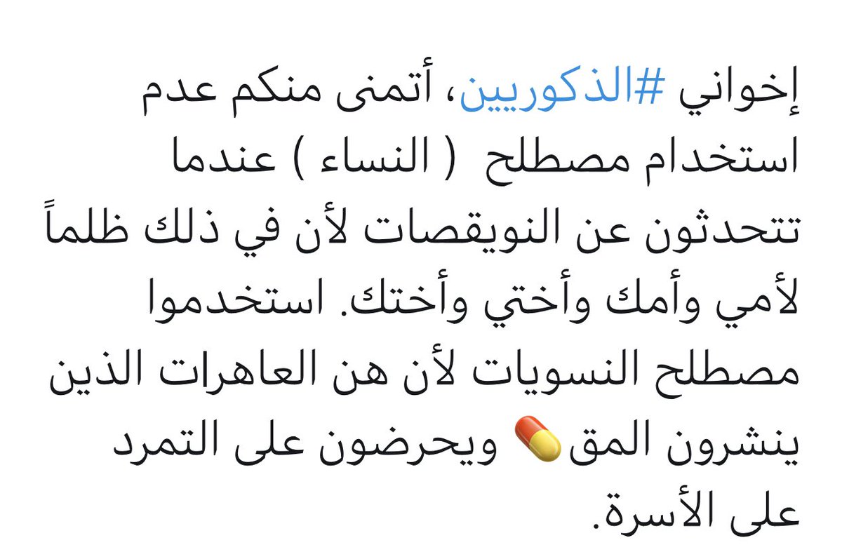 "أمي وامك واختي واختك" هذي صارت مثل "البسملة" في الخطابات ولكن هذي تستخدمها حتى تبدأ فيها نقاش مع ذكوري.