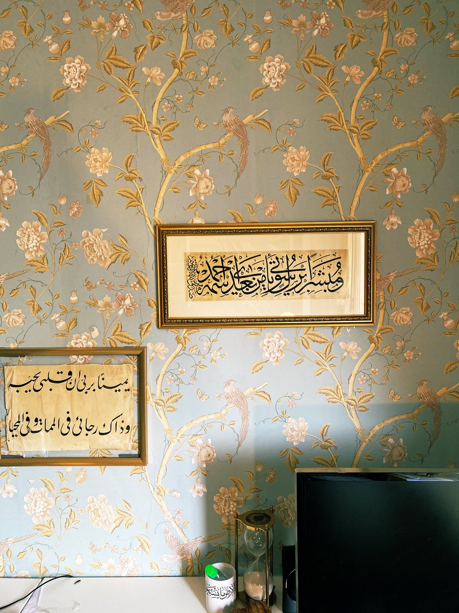اغلب ما ترونه هنا مجرد تمرينات لخطاطين أراد الورثة التخلص منها فباعوها بالجملة بثمن بخس لمحلات الأزقة. بالنسبة لي تمارين الخطاطين (يسمونها المشق) اجمل من لوحاتهم. فهي انعكاس صادق سري لاختياراتهم من القصائد وشوارد الحكمة والشعر. لا يرجون منها مالاً ولا مدحاً.
