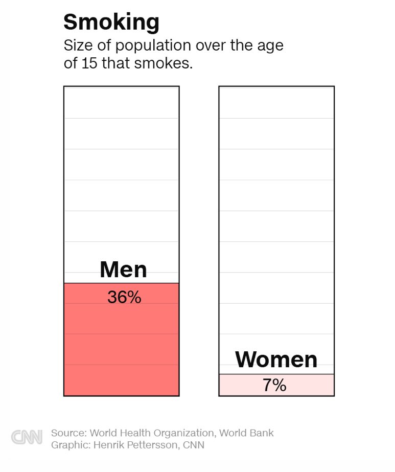 اكتر من ٥٠٪ من الذكور الصينيين بيدخنو و لكن بس ٣٪ من الإناث بيدخنو.