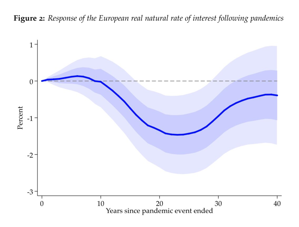 ٦. وسبب آخر هو ارتفاع معدل الادخار بعد الأوبئة حيث نفسية المستهلك تتوجس من أي وباء مستقبلي ولذلك تحبذ الإدخار وليس الاستهلاك. عدم الاستهلاك يخفض الطلب على المنتجات وارتفاع المدخرات يرفع الطلب على العوائد مما يعني أيضا انخفاضها.