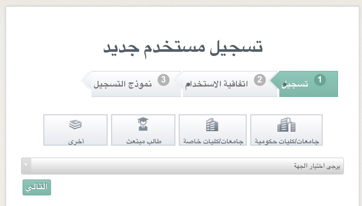 ثم تذهب لخيار التسجيل وتختار جامعتك ومن ثم تدخل رقم حسابك الجامعي ليأخذك للمكتبة. 2️⃣