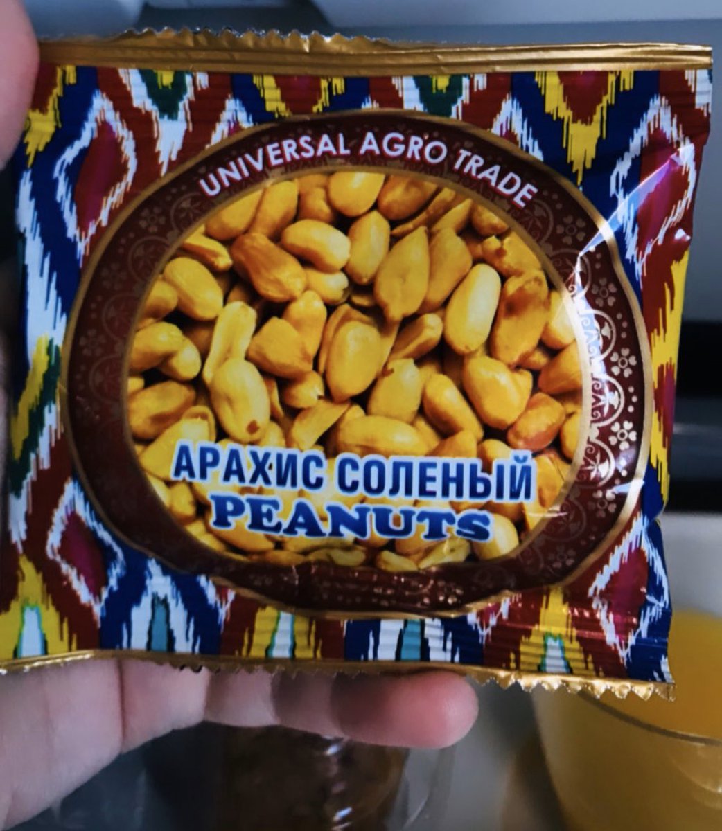 نكمل الصور، الفول السوداني في الطيارة مغلف بشكل يشبه اليكندز وهي مرتبة تستخدم للنوم، ونوع القماش ناعم جداً وتنام عليه أحلى نومة.