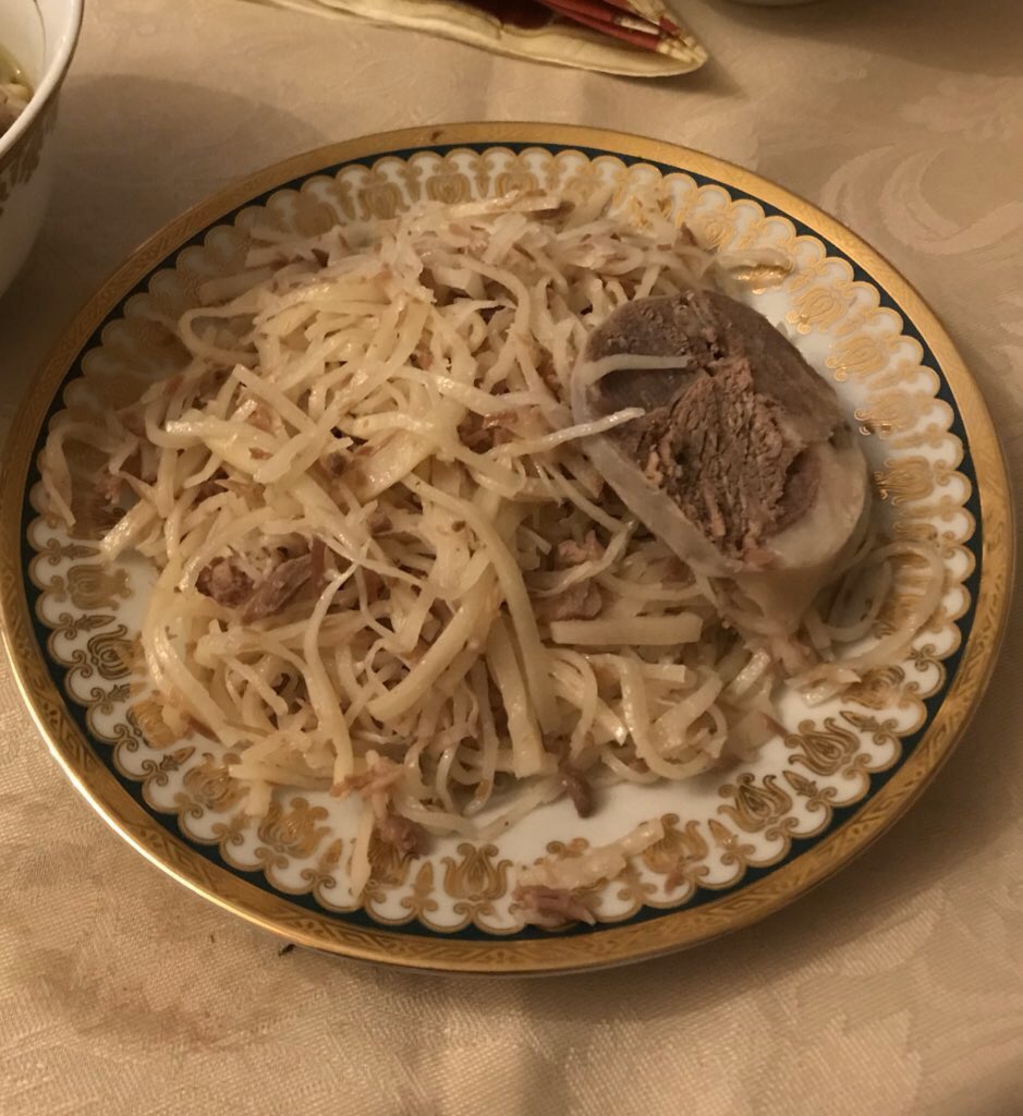 ياكلو لحم حصان و ينحط قطع مع الرز و مع طبق اسمو نارن.