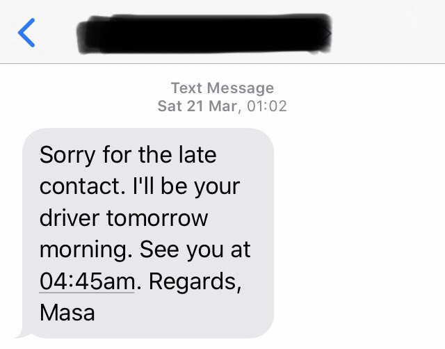 فجراً الساعة ٤:٤٥ وصل السائق ونزلت مع شنطي