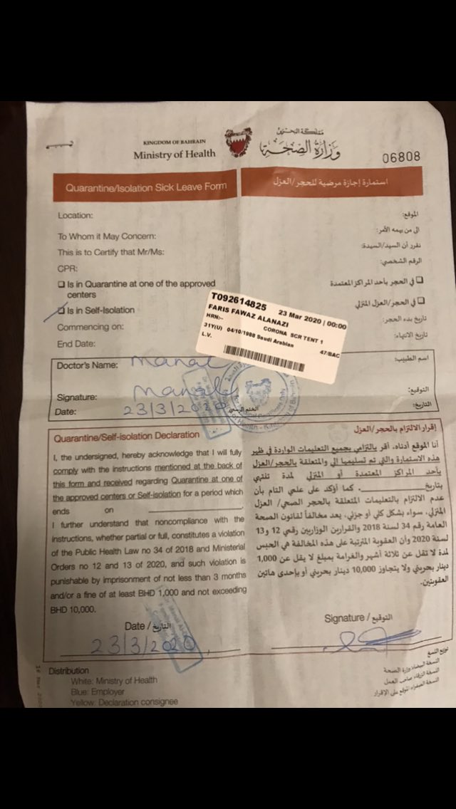 مباشرة تواصلت مع طيران الخليج وسألت هل مسموح ادخل البحرين أو لا! وتم التأكيد انه مسموح..