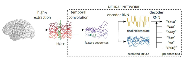 يقوم الشخص المشارك بالتجربة أثناء إجراء عمليته الجراحية بقراءة عدة جمل بصوت عالي، هذه الأقطاب تتبع نشاط الدماغ عبر القراءات الكهربائية وتحولها إلى بيانات، يتم تدريب الشبكة العصبية على علمية التشفير بإدخال هذه البيانات،
