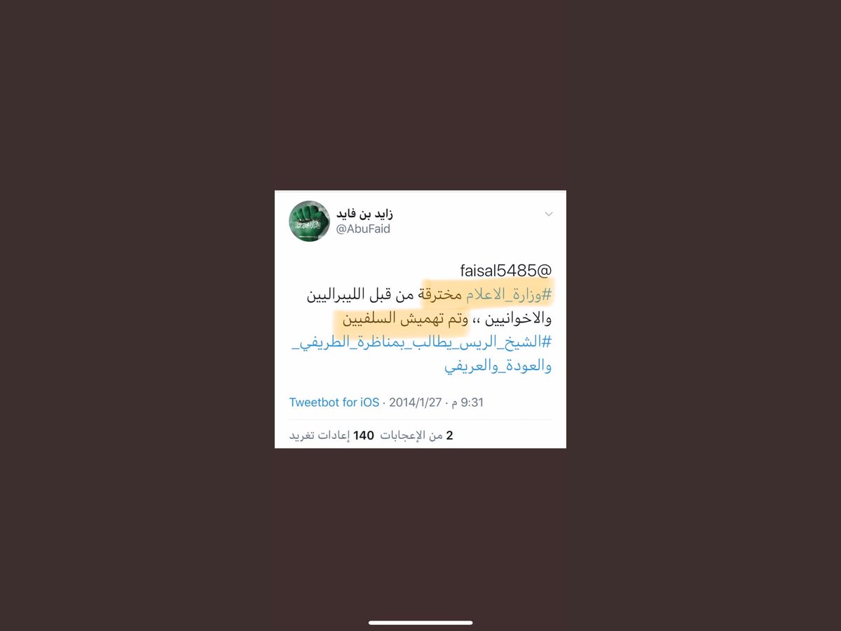 لمن لازال مخدوعا بهم نقول إن ولاءهم وبراءهم يقوم على معيار الحزب وإن خالف توجه الوطن والدولة لأن الوطن ورقة من أوراق المساومة لديهم. انظر #التغريدة المرفقة كيف نبشوها بعد جهد جهيد ويريدون أن أقف ضد ترحيب #المملكة_العربية_السعودية