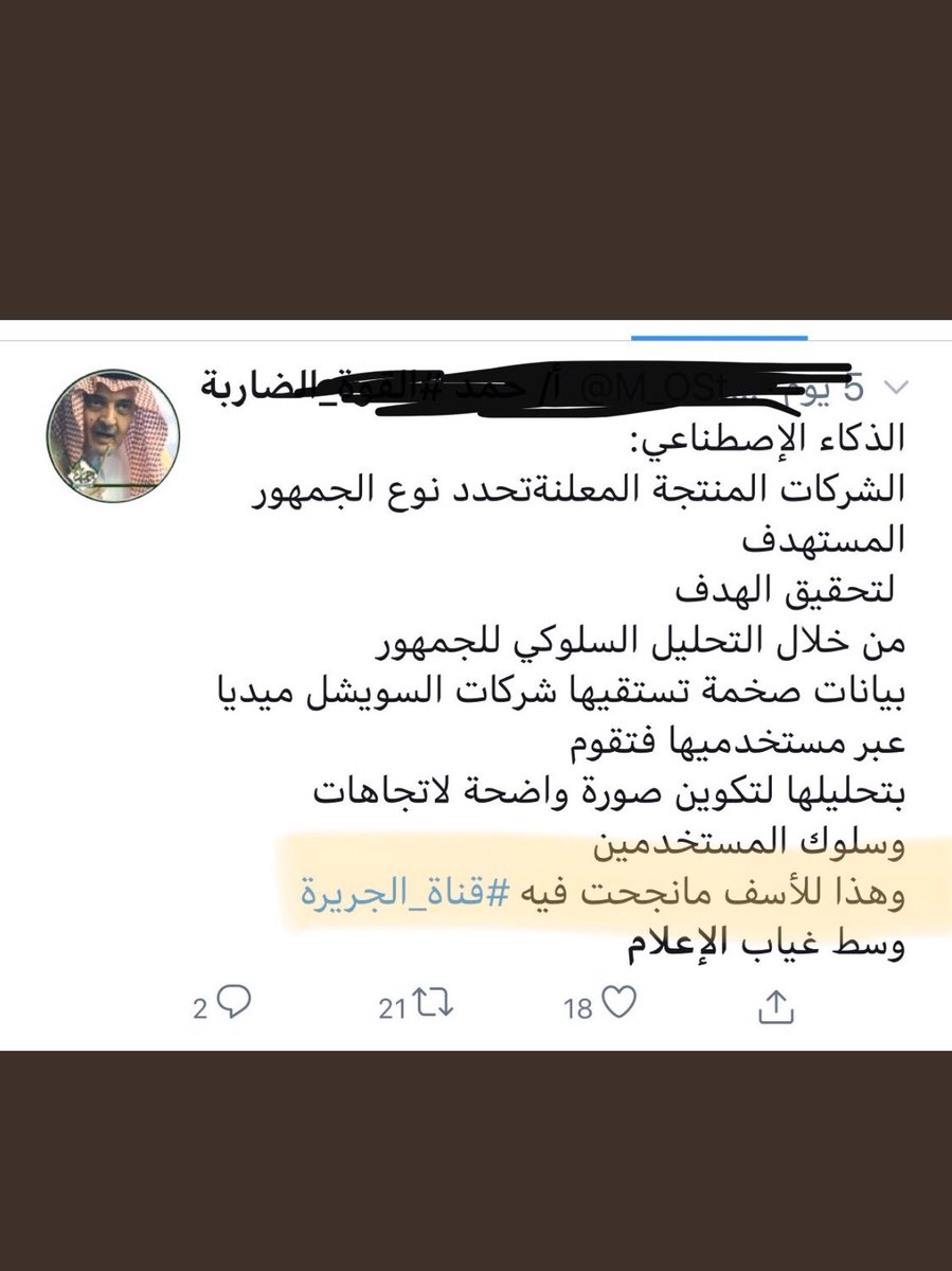 #الإعلاميون المختصون وغير #الإعلاميين يرون #قناة_الجزيرة المنحطة قناة تفتقد للمهنية والحياد إلى أبعد حد،وهذا أمر صار يعرفه القاصي والداني؛أما المواطن (المخلص) بمقاييس الحزب فيرى أن #الجزيرة القطرية نجحت في #الذكاء_الاصطناعي بل وتميزت!