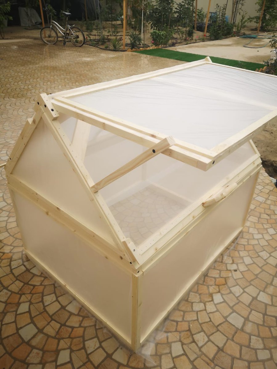 نموذج آخر ل #زراعه_الاسطح لأحد الإخوان ٨ أحواض خشبية تكلفة الخشب ٧٠٠ ريال ومسامير كرتون ب٦٥ ولفة نايلون مقاس ٥٠٠ ماكرون ب٢٥ وبرميل صبغ ب٥٥ ولفة عازل بيتمون ب٦٥.