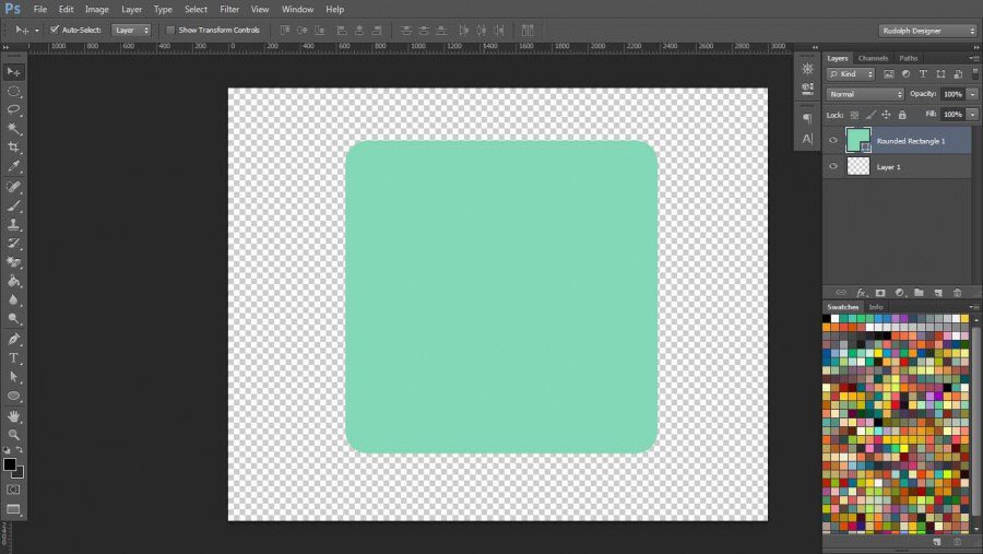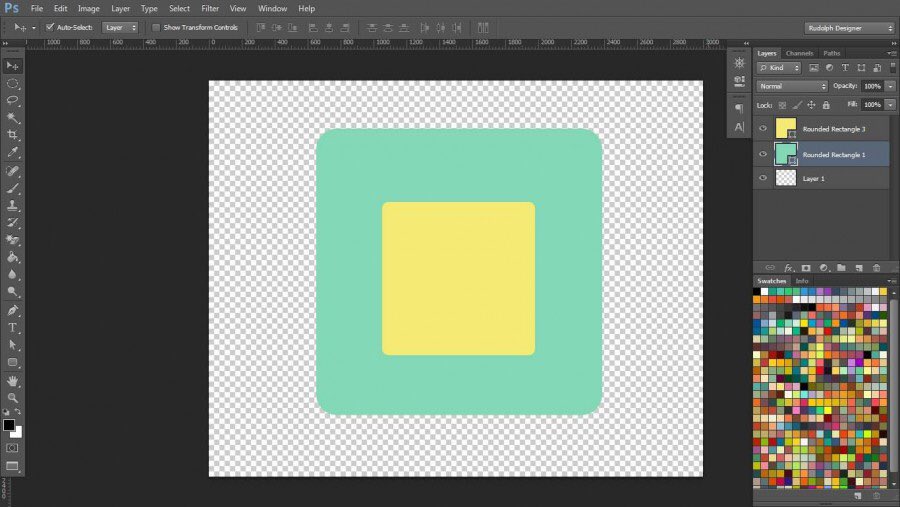 2- أرسم مربّعََا مستدير الحوافّ بالأبعاد 929 بكسل / 929 بكسل و بشعاع 38 بكسل. استعملت اللون #f5ea74 ليشابه الملاحظة الملصقة.