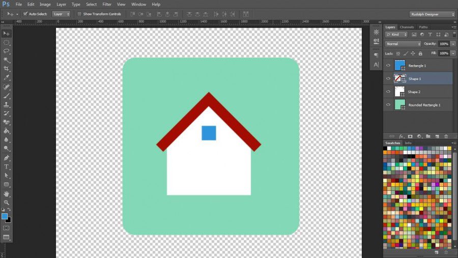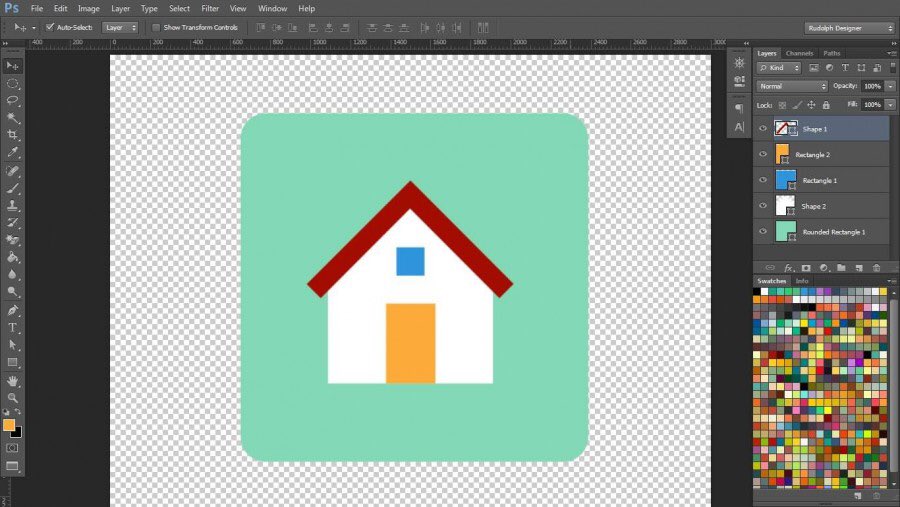 باستخدام أداة القلم (Pen Tool)، ارسم شكلا مثل الشكل الموجود في الصورة أسفله، وأعطه اللون #a30d00. سيكون هذا الشكل بمثابة السقف الخاص بأيقونة الصفحة الرئيسية التي ننشئها.