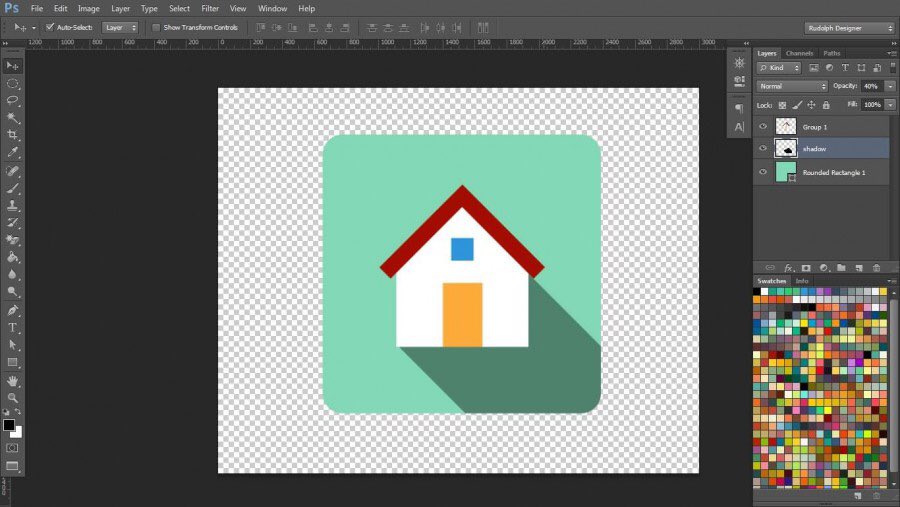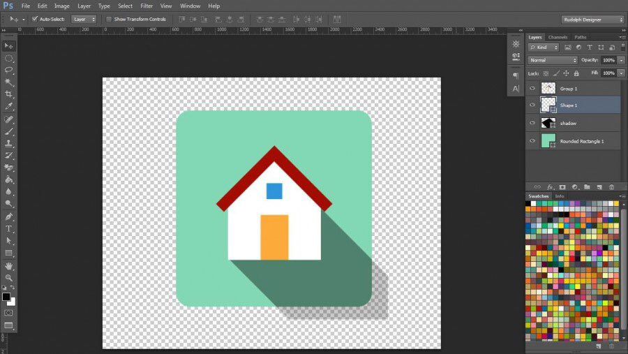 يمكنك حفظ ما قمت به لحد الآن كصورة. وفي الواقع، يمكننا اعتبار هذه الصورة كأيقونة مسطحة للصفحة الرئيسية. ولكن لا زلت أريد إضافة ظلِِّ طويل للأيقونة، فاستمر.)