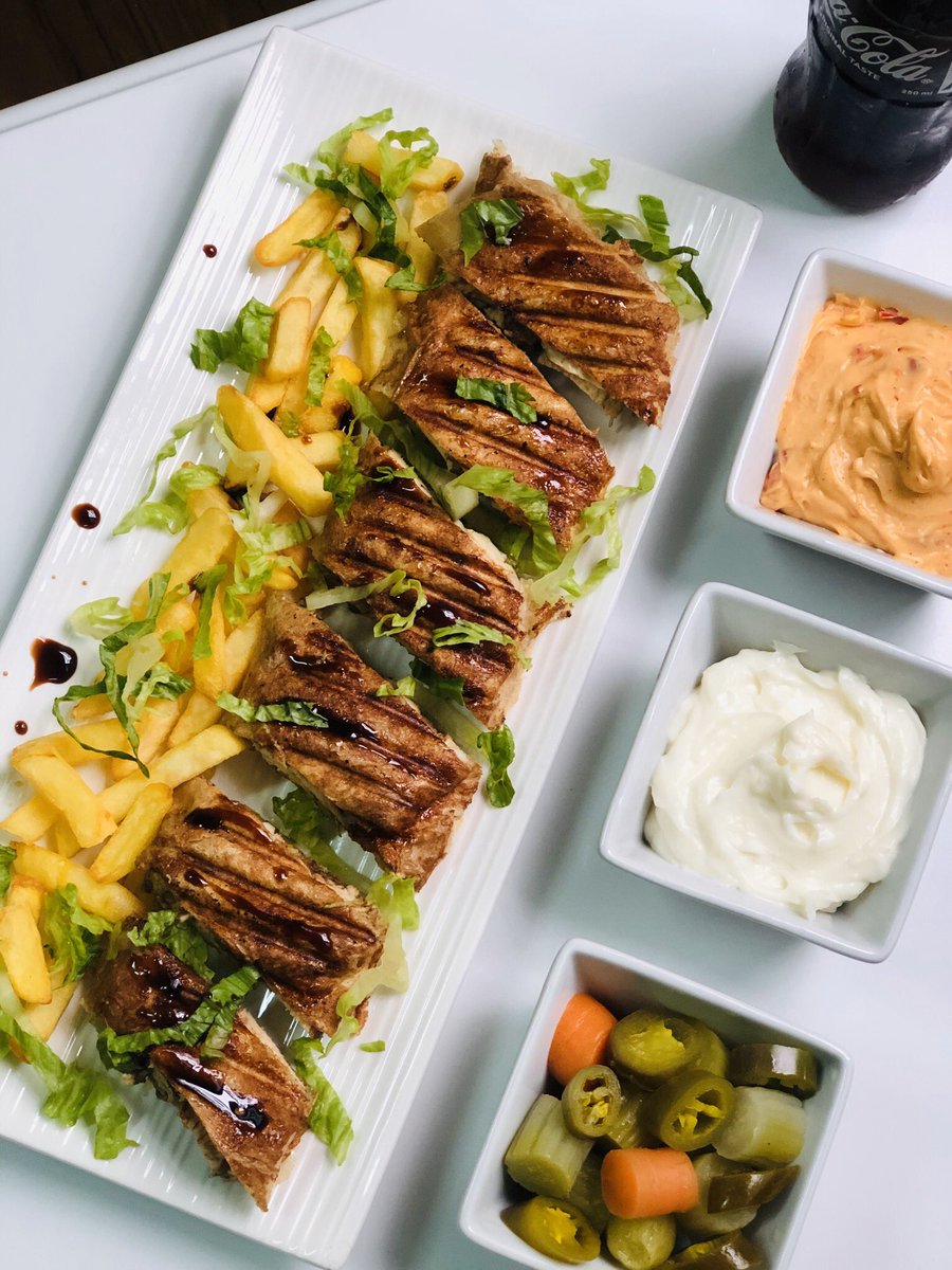 ٥- بلف السندويشة بخبز الصاج وبدهنها بدبس رمان وعالشواية وصحتين♥️