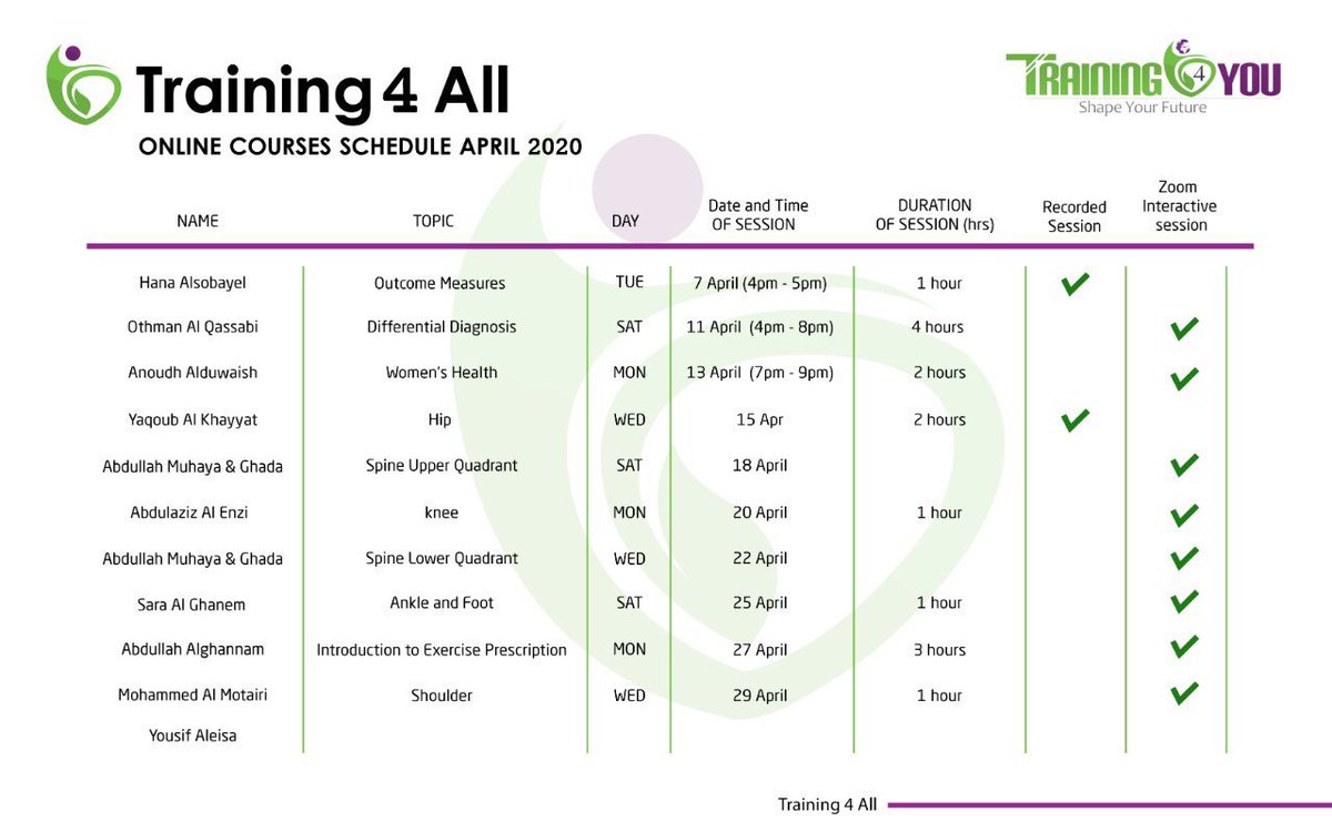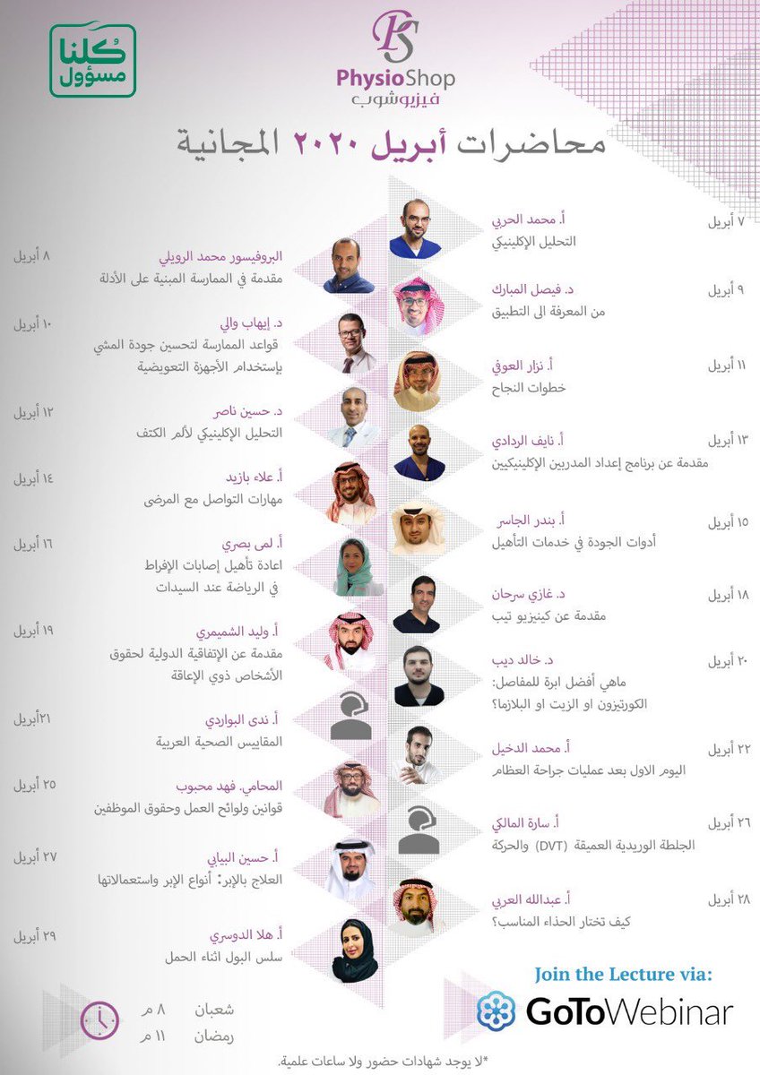 جدول الأسبوع القادم للجمعية السعودية للعلاج الطبيعي ???