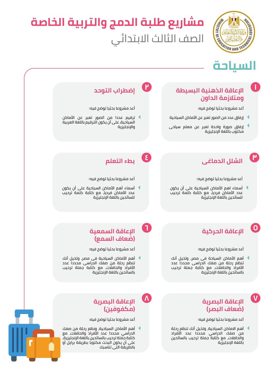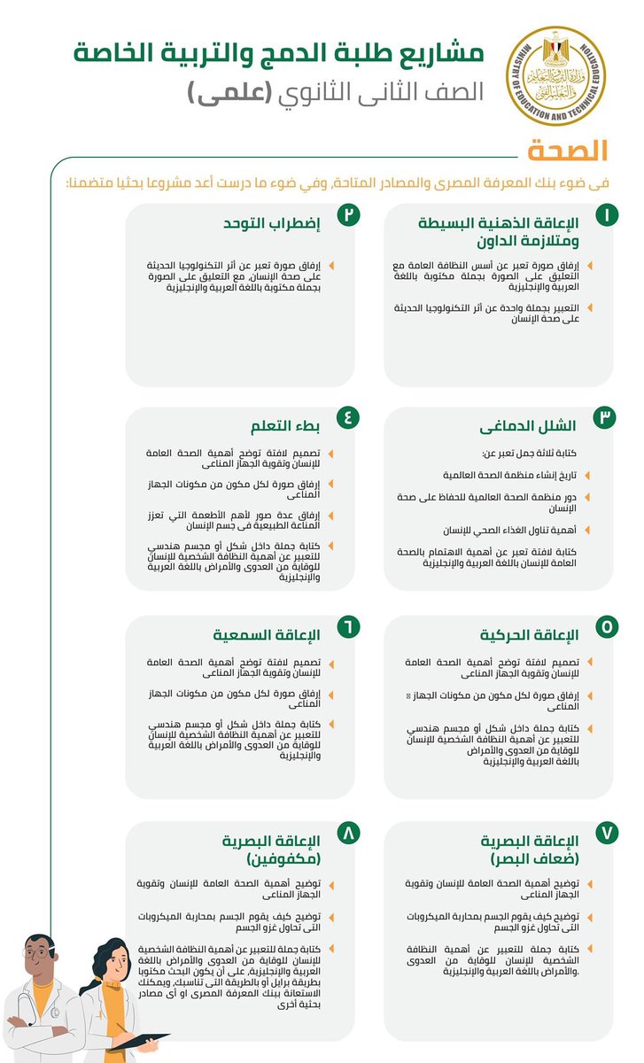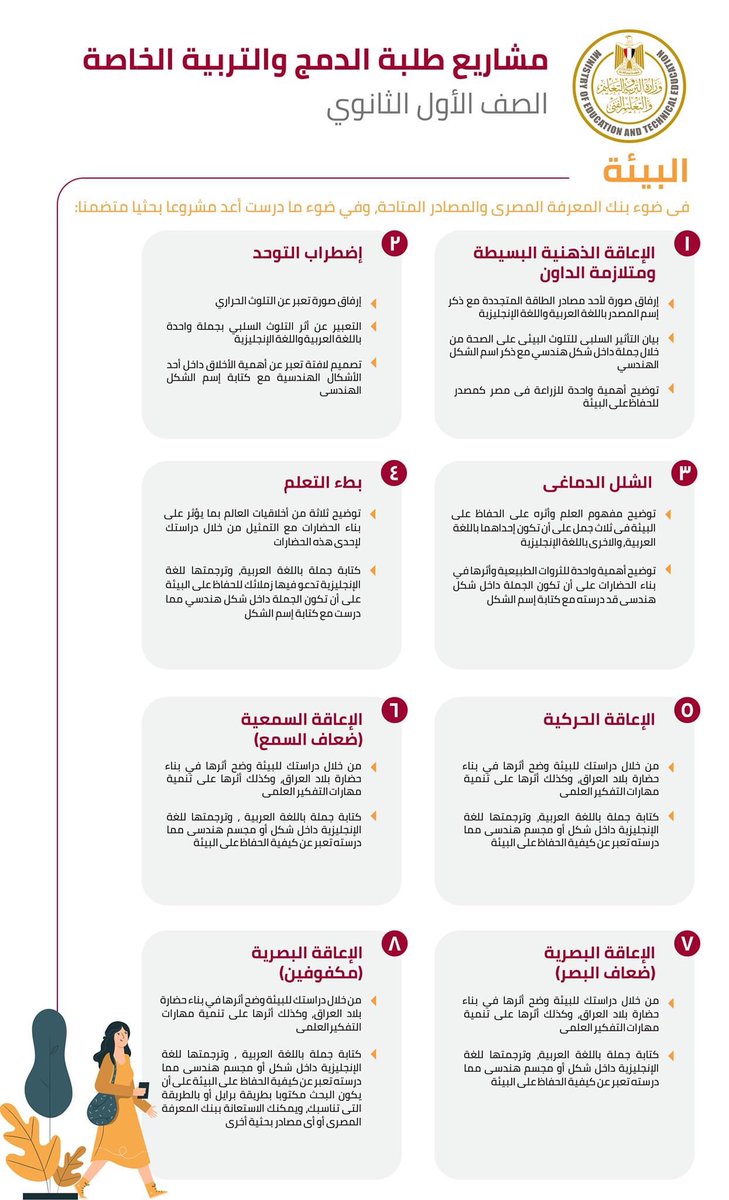 تحت التغريدة دي عرض كامل لمواضيع المشاريع البحثية المقررة على طلاب الدمج والتربية الخاصة من الصف الثالث الإبتدائي وحتى الصف الثاني الثانوي.