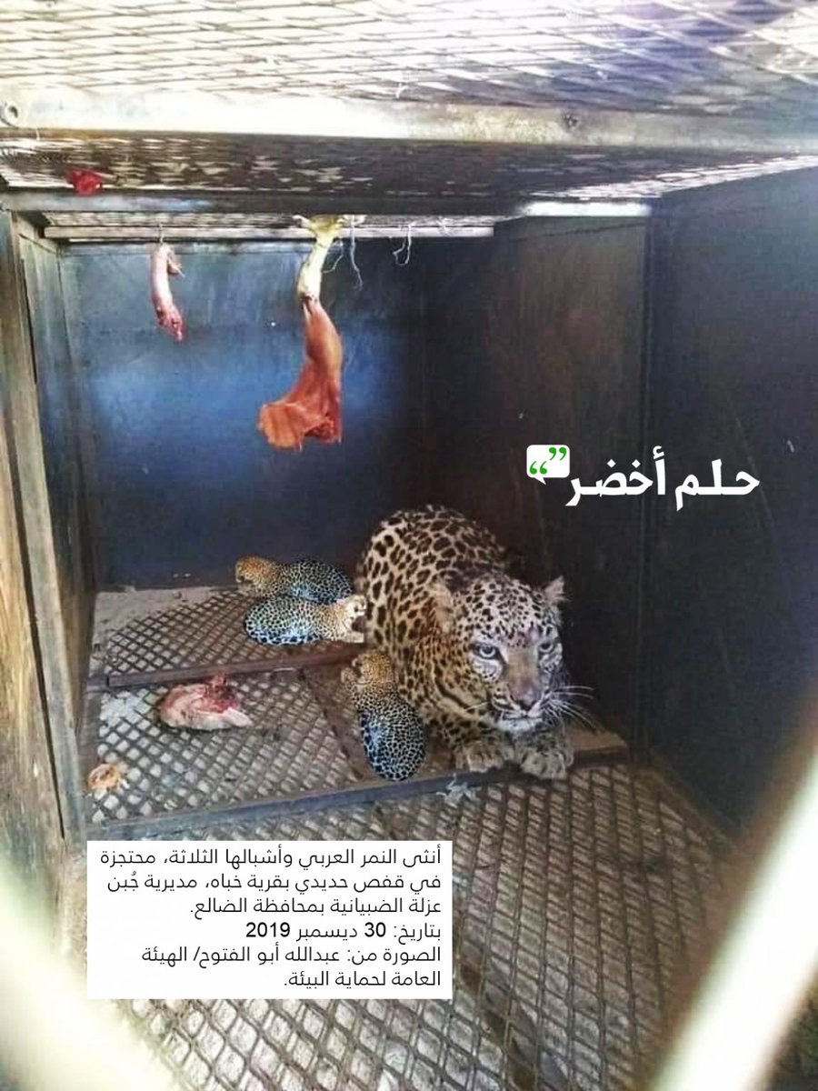 وبحسب المعلومات المتوافرة، ما تزال أنثى النمر وأشبالها، محتجزة في قرية “خباه” في الضالع، لدى الذين قاموا باصطيادها واحتجازها في قفص، وهم يرفضون اطلاق سراحها مع اشبالها في جبال الضالع وبيئتها الطبيعية.