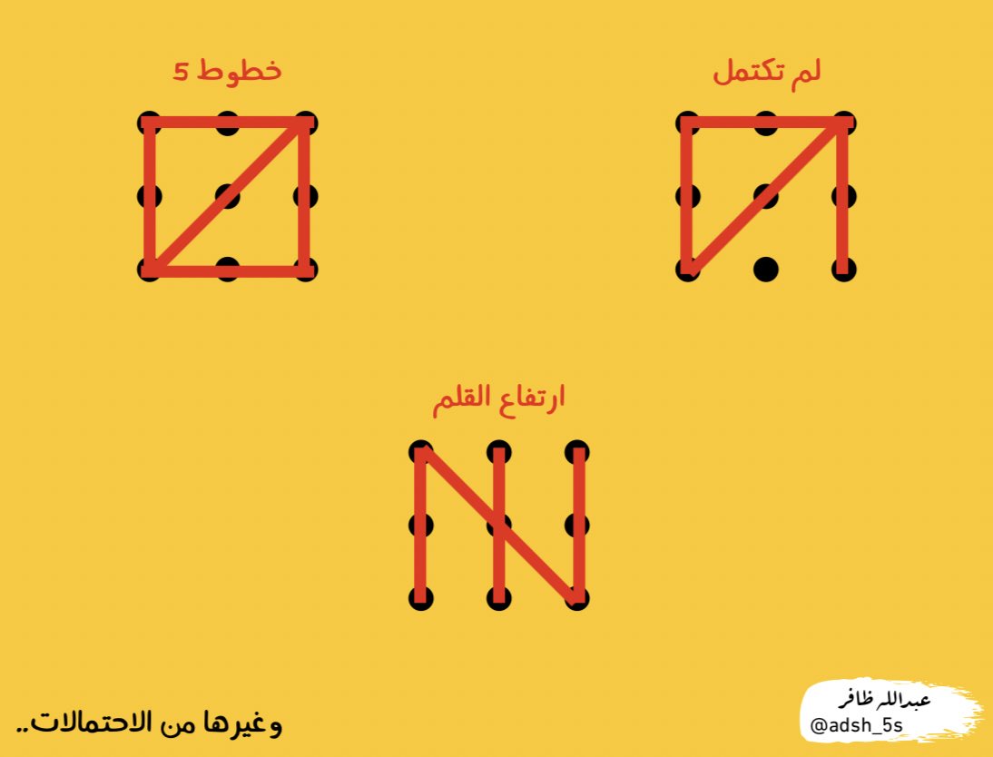 بمعنى انك تتجاوز حدود النقاط التسع لتستطيع ربط النقاط في مساحة اوسع