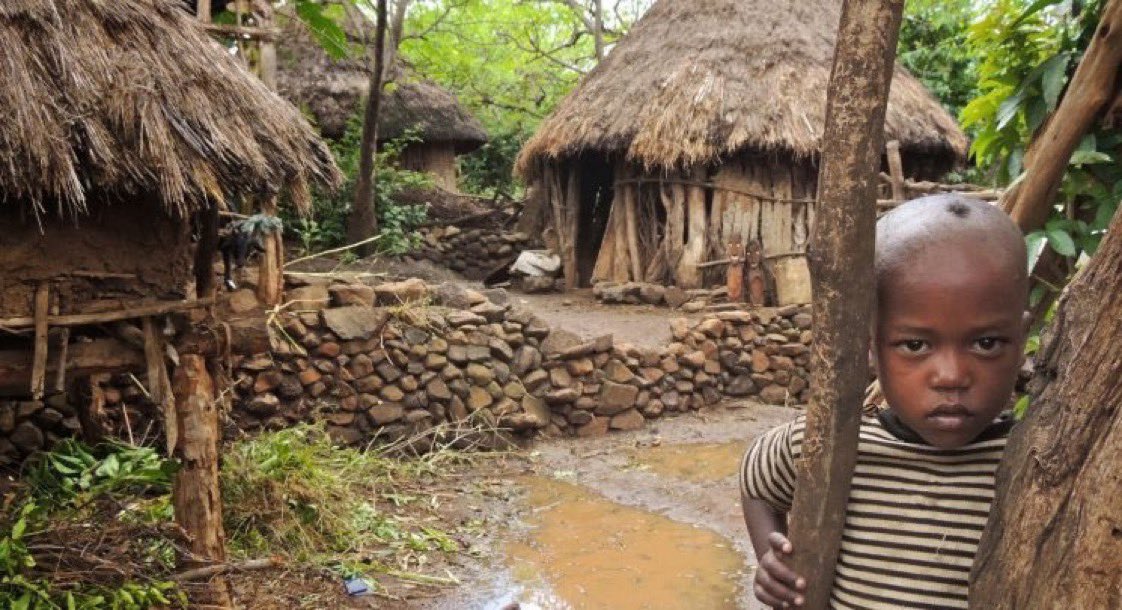 عمره ثلاث سنوات عند باب منزل ذويه يلهو...