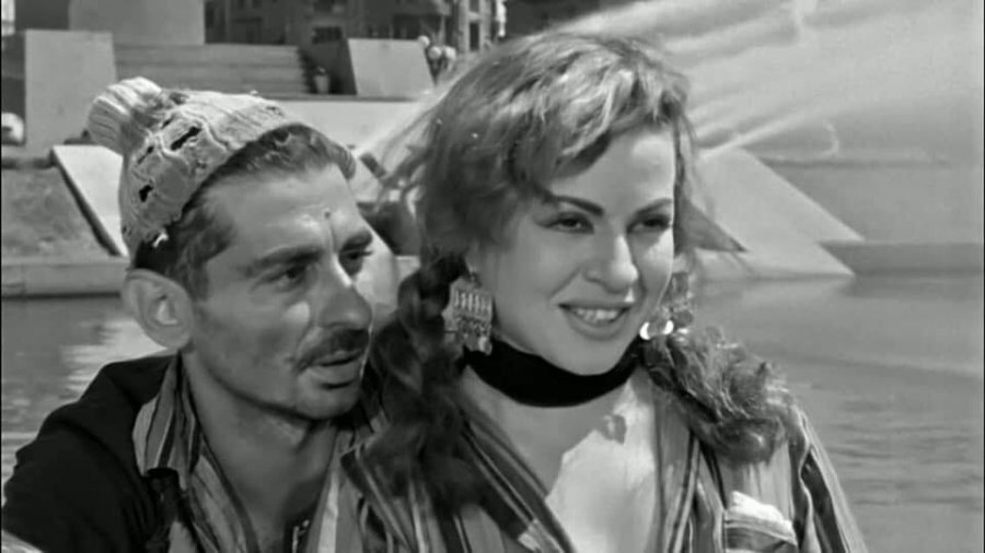 النجمة هند رستم والمخرج يوسف شاهين في مشهد من "باب الحديد" في نسخته المرممة