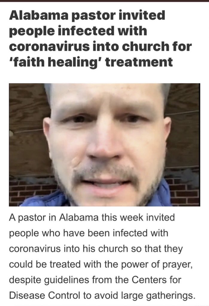 دعى قسيس في ألاباما مرضى كورونا لكنيسته حتى يشفيهم بقوة الصلاة.
